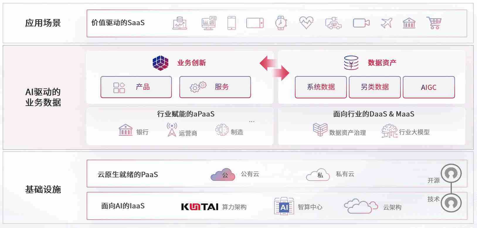 数字时代,,围绕企业数字化转型的关键要素,,,NO钱包数码开创性的提出数云融合战略和技术体系框架,,,,着力在云原生、、、数字原生、、、、AI原生和信创产业上架构产品和服务能力,,,,为处在不同数字化转型阶段的快消零售、、汽车、、、、金融、、、、医疗、、、、政企、、、教育、、、运营商等行业客户提供泛在的敏捷IT能力和融合的数据驱动能力,,,,构建跨界融合创新的数字业务场景和新业务模式,,,助力企业级客户建立面向未来的核心能力和竞争优势,,,全面推动社会的数字化、、、、智能化转型升级。。。